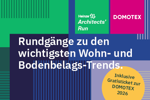 Der Heinze Architects' Run bietet Ihnen einen kompakten Überblick über die Highlights der DOMOTEX. Ihr Vorteil: Die Teilnahme am Run beinhaltet Ihren kostenlosen Eintritt zur DOMOTEX 2026.
